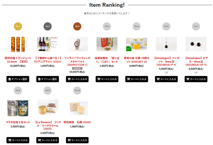 第1位の琥珀印章は、一点ごとに色柄の異なるトランジェントカラーが根強い支持をいただいております。