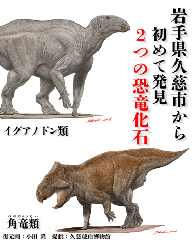 久慈層群(玉川層)から新たに角竜類と鳥脚類(イグアノドン類)の歯の化石が発見されました。