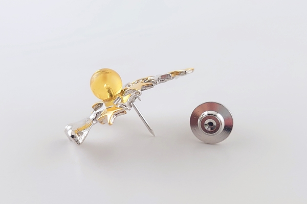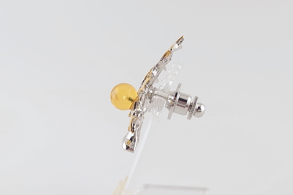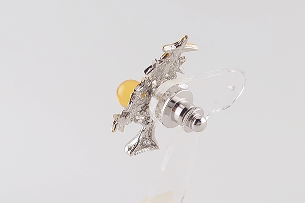 明るい色合いにマッチする、シャンパンカラーの琥珀が光ります。