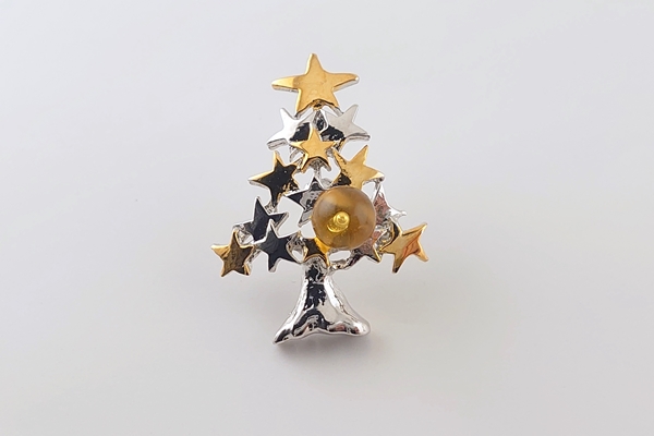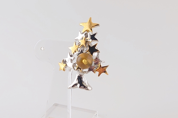 ゴールドとシルバー、二色の星で作られた、ツリーモチーフのブローチ。