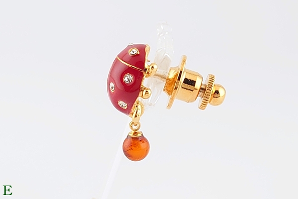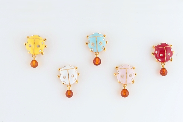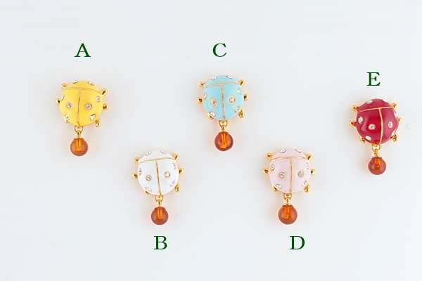 色とりどりのてんとうむしをモチーフにした、海外産琥珀のタックブローチ。