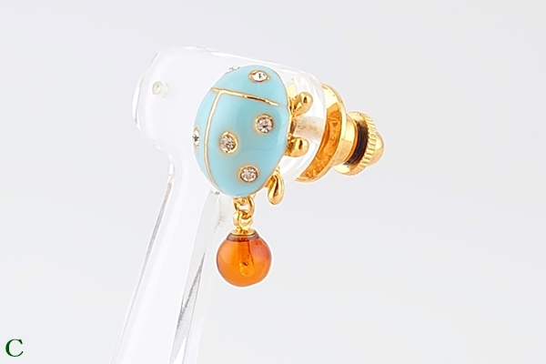 どちらも「幸福を運ぶ」といわれる琥珀とてんとうむしの組み合わせは、贈りものにもぴったり。