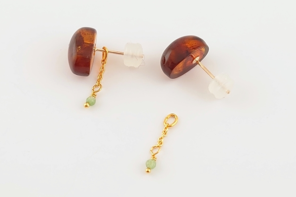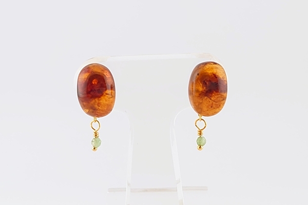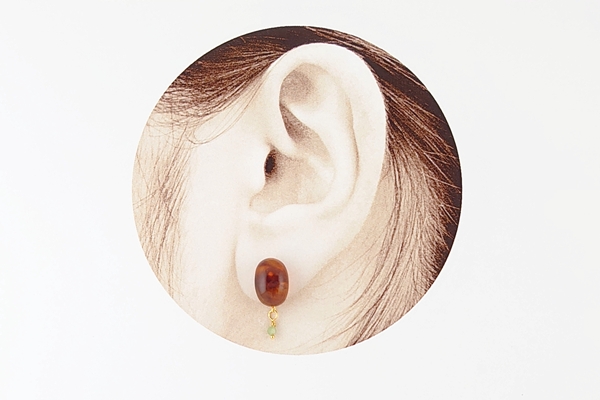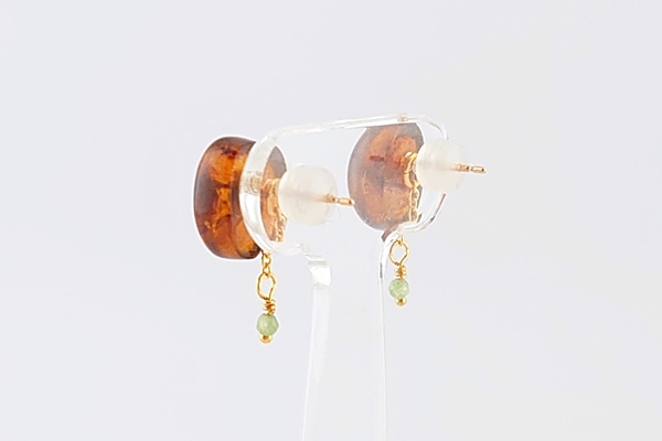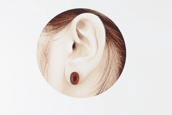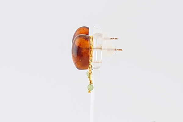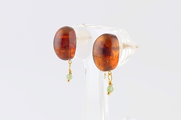 ふっくらとしたオーバル型の久慈産琥珀のピアスです。