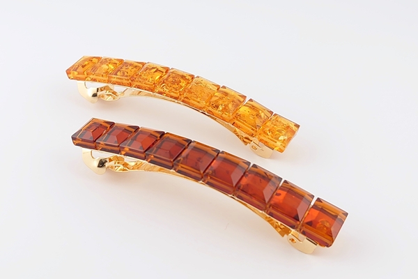 カット入りの海外産琥珀を贅沢に使用した、バレッタタイプのヘアピンです。