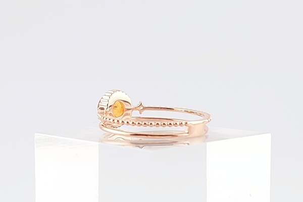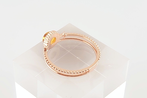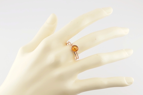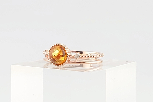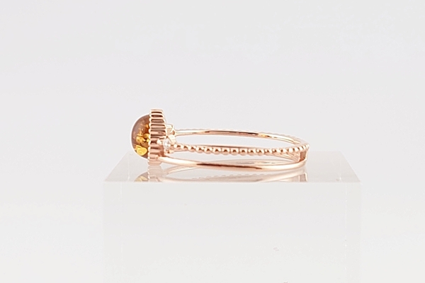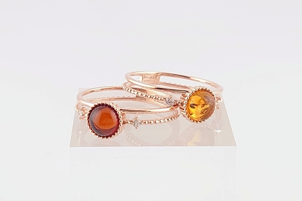 ふっくらと丸い琥珀の両端にキュービックジルコニアをあしらい、きらめきをプラス。