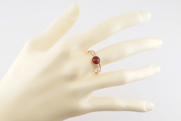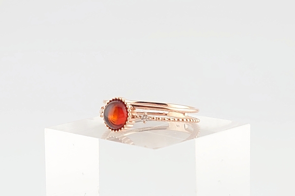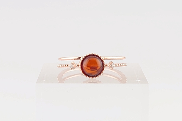 ふっくらと丸い琥珀の両端にキュービックジルコニアをあしらい、きらめきをプラス。