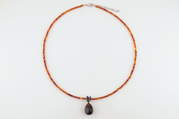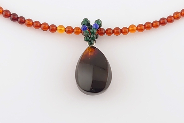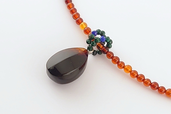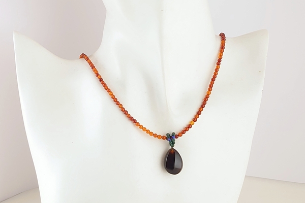 久慈産琥珀のペンダントトップと、海外産琥珀のネックレスを組み合わせました。