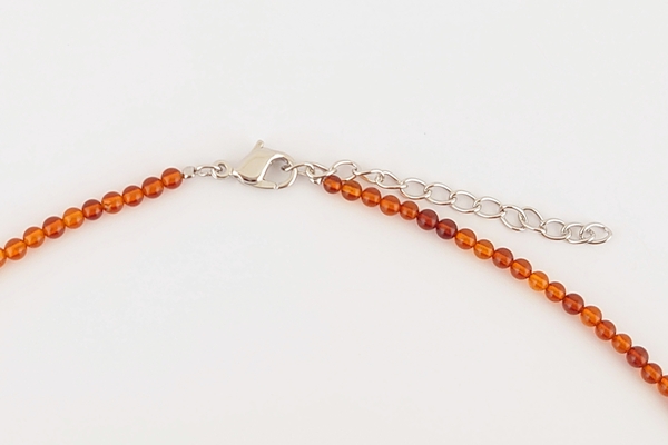 ペンダントトップにはカットを入れ、深みのある久慈産琥珀の素材感を引き立てます。