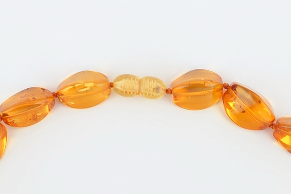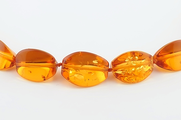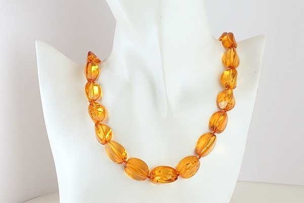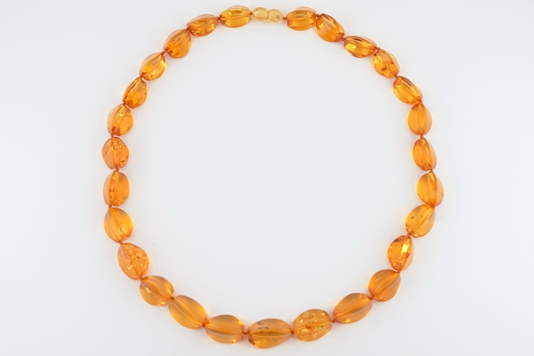 三面カットのパーツを組み上げた、コニャックカラーの海外産琥珀ネックレス。