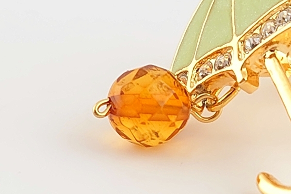 傘の先で揺れる海外産琥珀は、細かなミラーカットを施し、きらきらとした輝きをお楽しみいただけます。