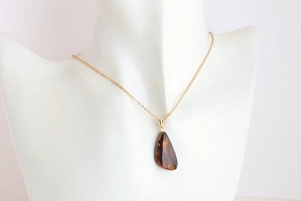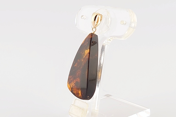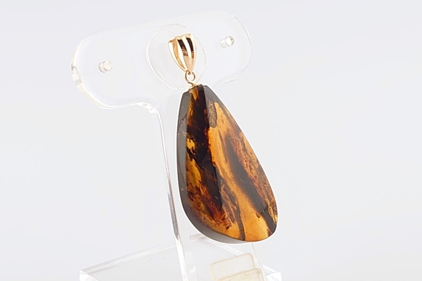 くっきりとした縞目模様が特徴の、久慈産琥珀のペンダントトップです。