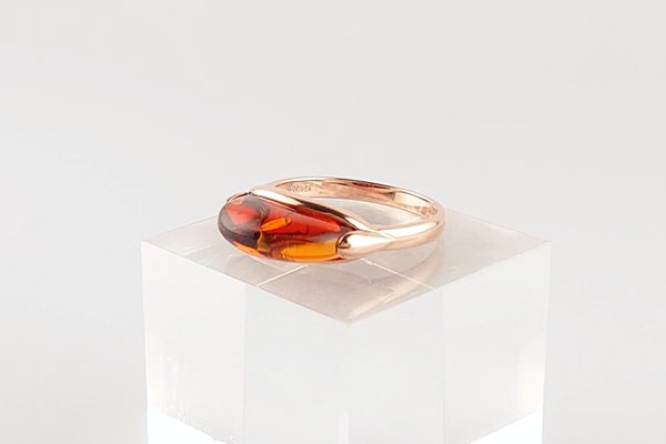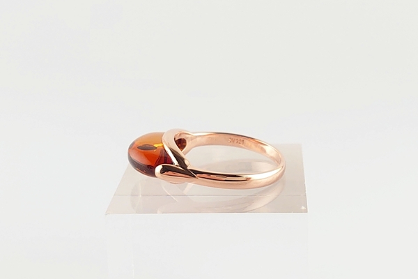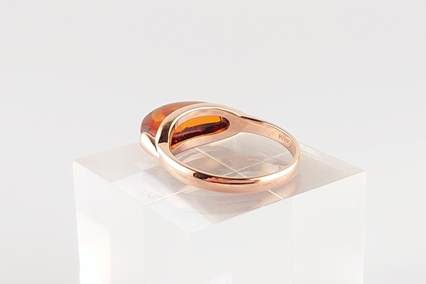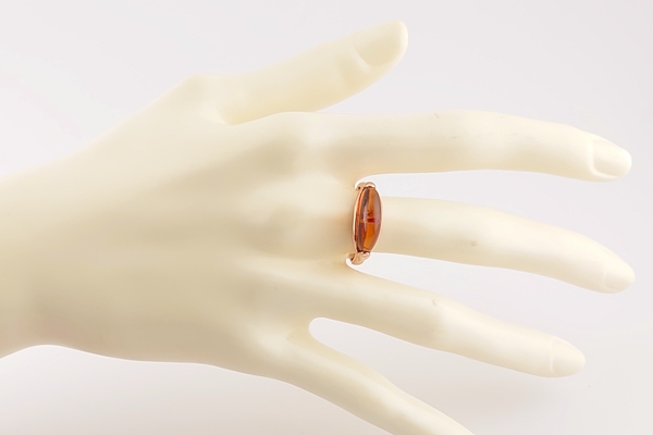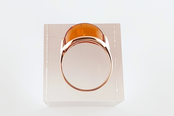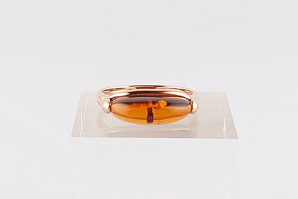濃いめのコニャックカラーの琥珀が、上品にお手元を彩る海外産琥珀のリングです。