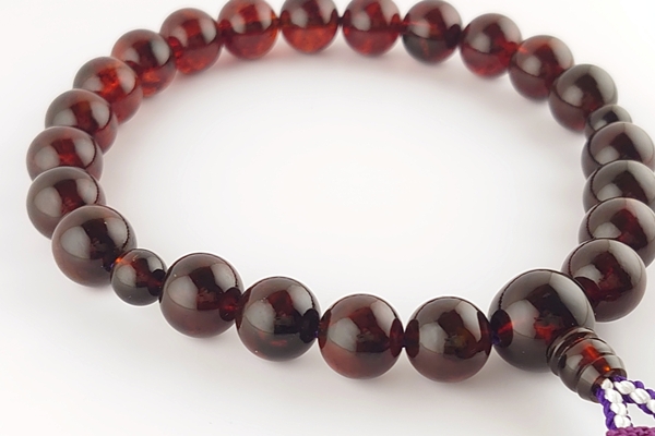 濃い色の久慈産琥珀で仕立てた、男性用の片手念珠です。