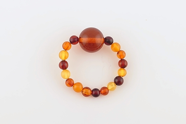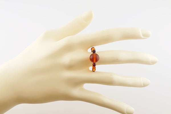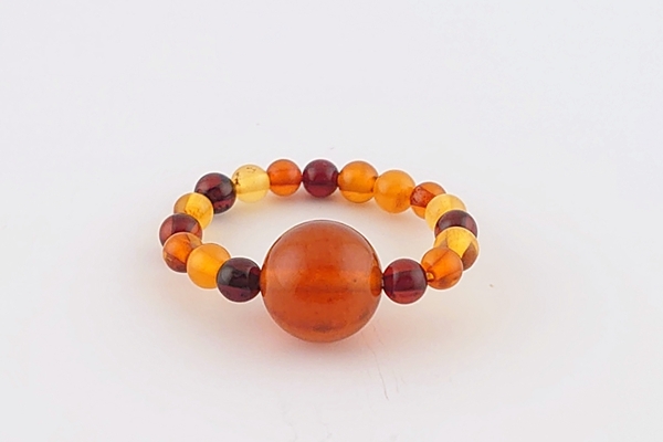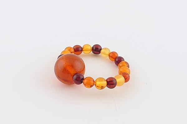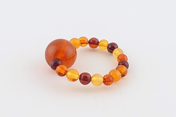 カラフルな海外産琥珀と組み合わせたリングは、シリコンゴム組で着脱も簡単。