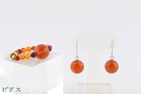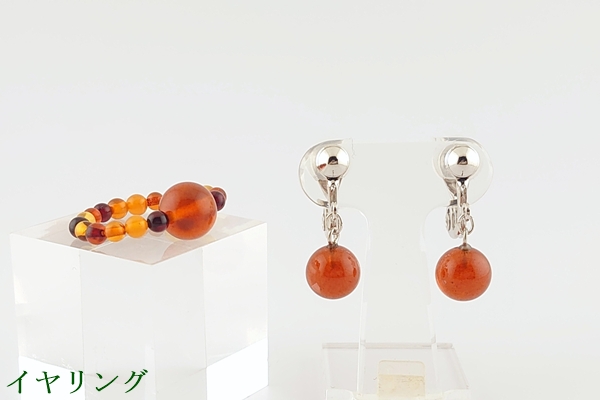 普段使いしやすい9mmのリファインドアンバーを使用した、リングとイヤアクセサリーのセットです。