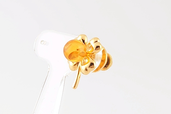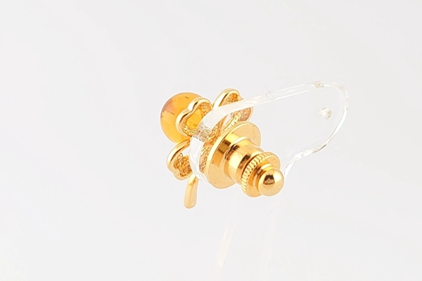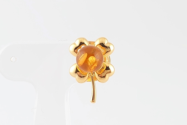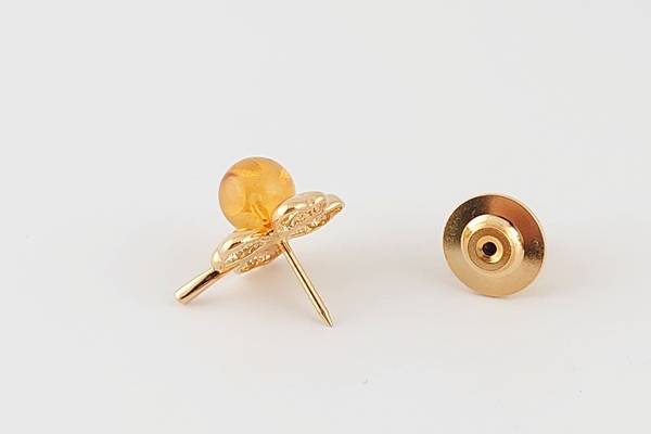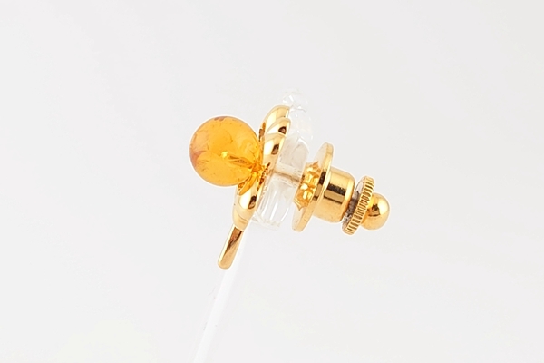 ブローチ:海外産琥珀、琥珀サイズ直径約8mm、金具真鍮製(金色メッキ)