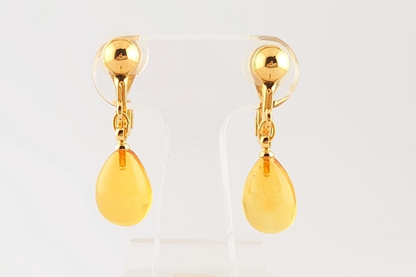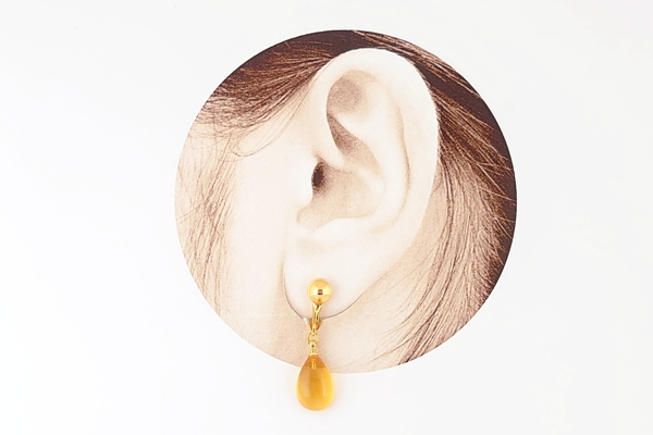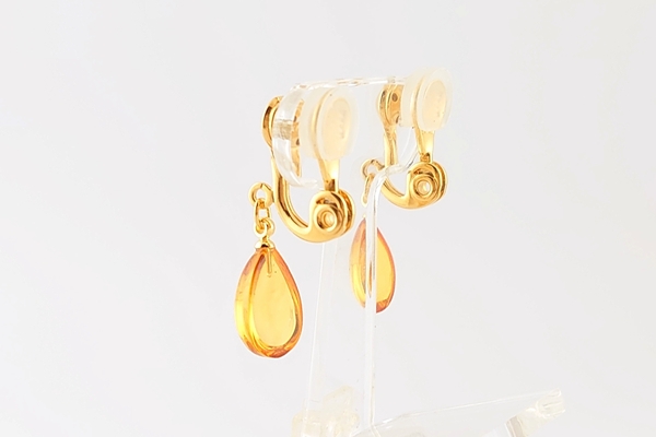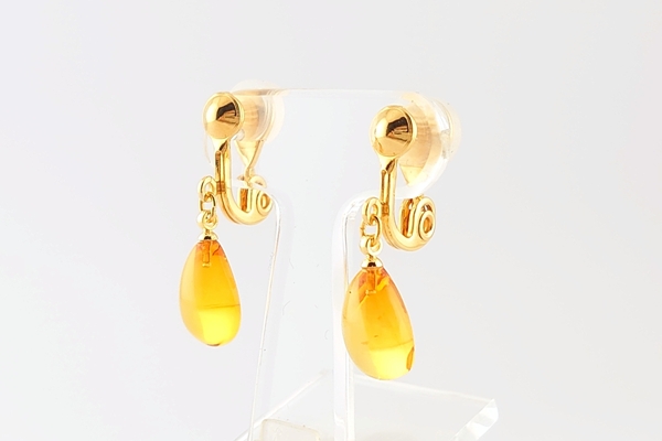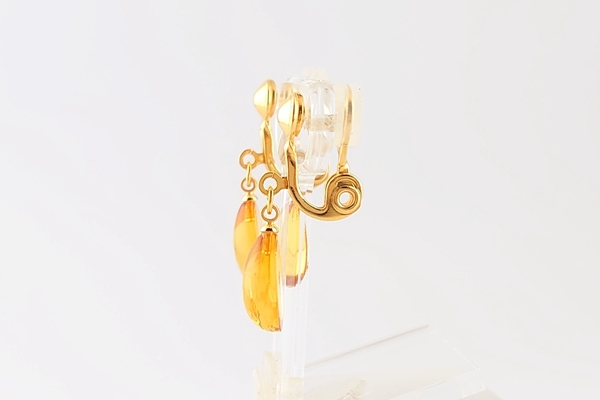 イヤリング:海外産琥珀、琥珀サイズ約13×9×5mm、チェーン全長45cm、金具真鍮製(金色メッキ)