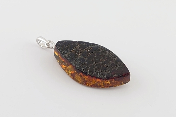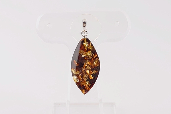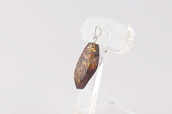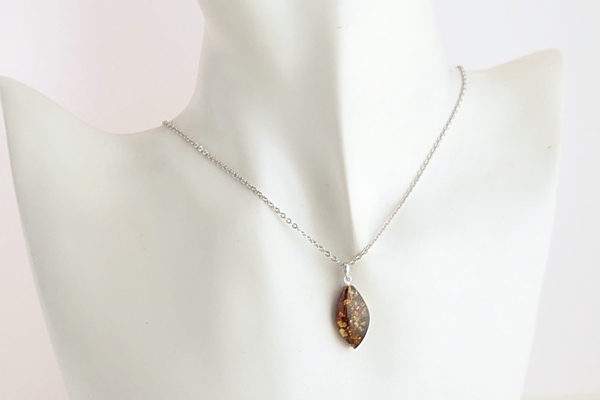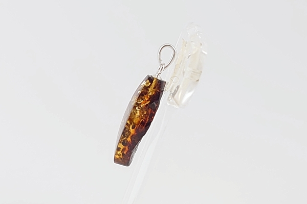 ペンダント(アースカラー):海外産琥珀、琥珀サイズ約19×10×5mm、金具真鍮製(銀色メッキ)