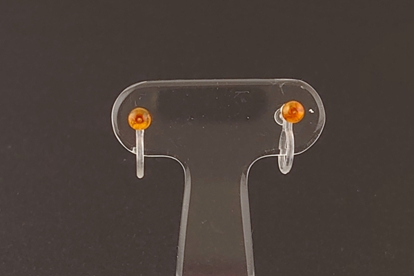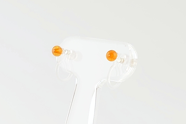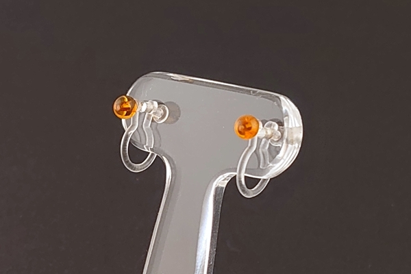 ノンホールピアス:海外産琥珀、琥珀サイズ直径約2.5mm、樹脂製