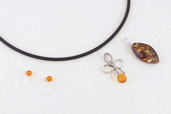 内容:ペンダントトップ2点、ラバーネックレス、樹脂製ノンホールピアス