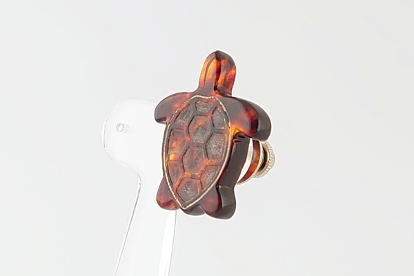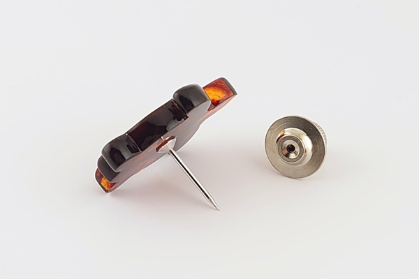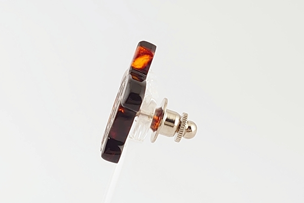 タックブローチ:リファインドアンバー、琥珀サイズ約25×21×4mm、金具真鍮製(銀色メッキ)