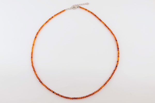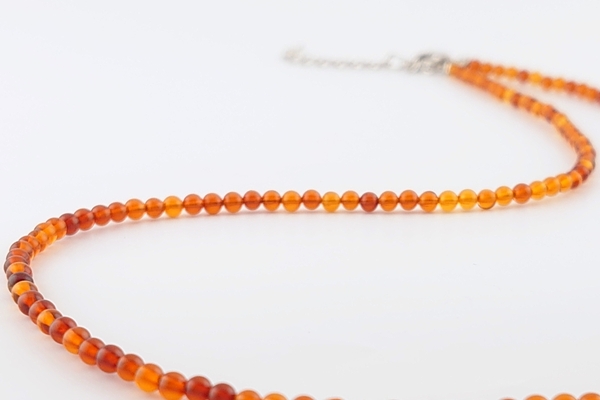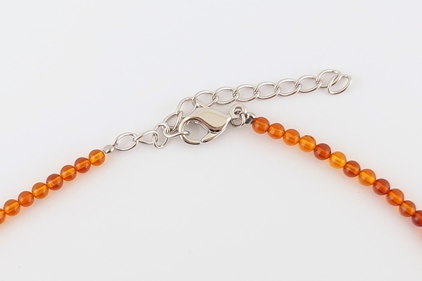 ネックレス:海外産琥珀、琥珀サイズ直径約3mm、全長約50cm(本体45cm+アジャスター5cm)、金具真鍮製(銀色メッキ)