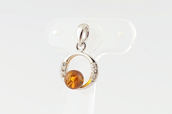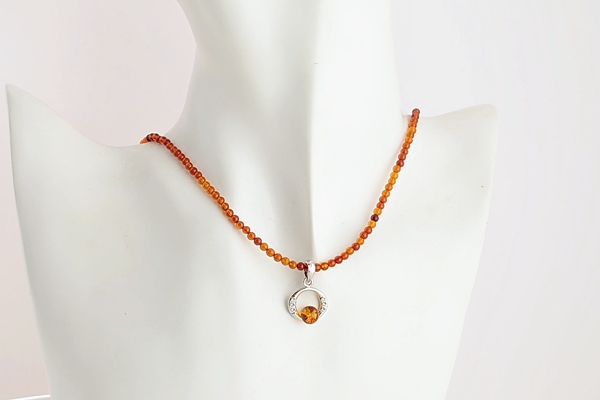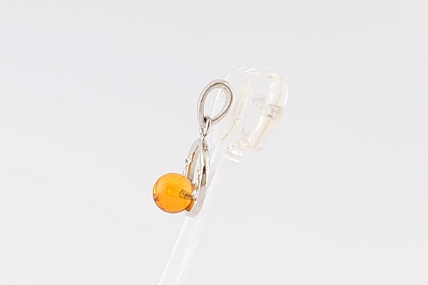 ペンダント:海外産琥珀、琥珀サイズ直径約6mm、金具真鍮製(銀色メッキ)