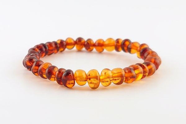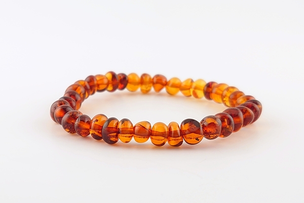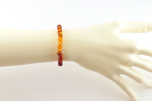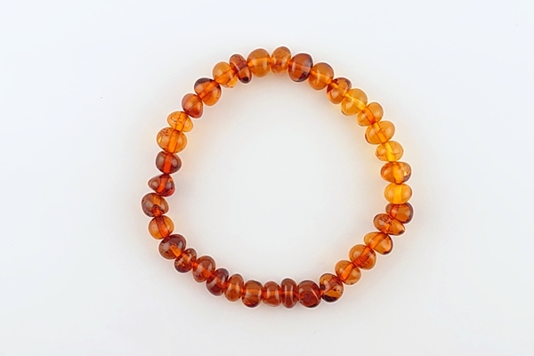 透明感のあるコニャックカラーの濃淡が、絶妙なニュアンスを生み出す、海外産琥珀のブレスレット。