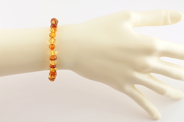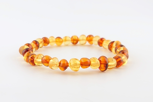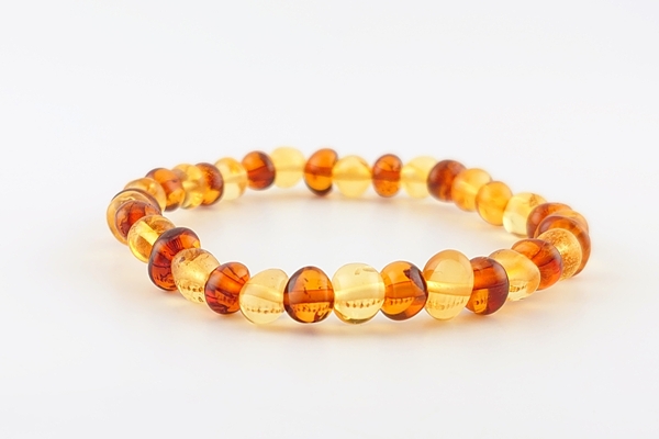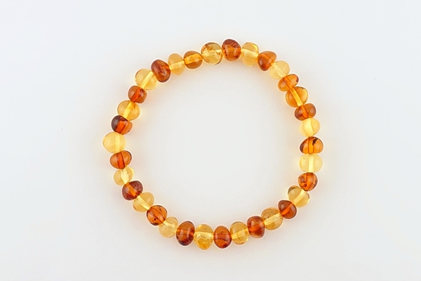カラフルな色合いが、身に着けているだけで元気をくれそうな、海外産琥珀のブレスレット。