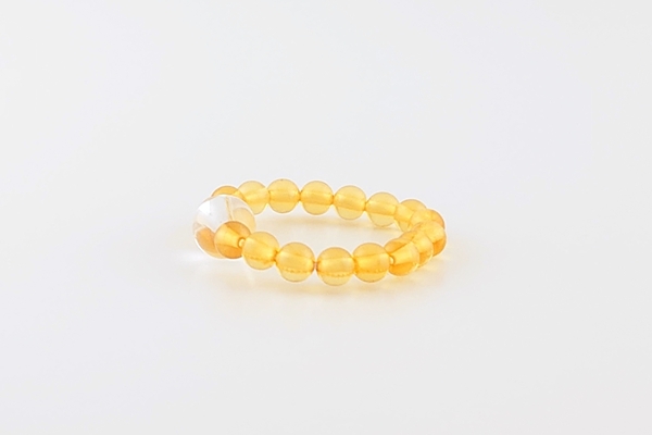 コニャックカラーの海外産琥珀に、天然石を組み合わせたストレッチリングです。