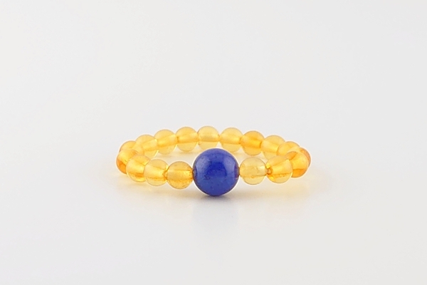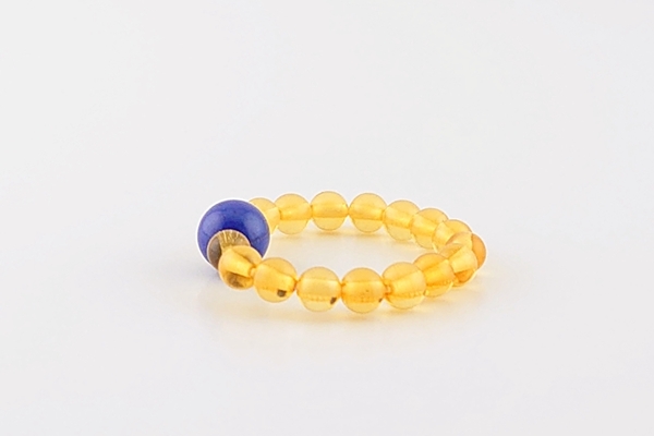 コニャックカラーの海外産琥珀に、天然石を組み合わせたストレッチリングです。