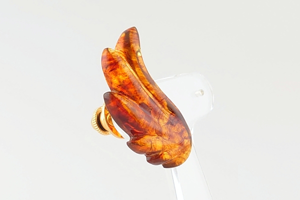 羽根をモチーフにした、リファインドアンバーのタックブローチです。