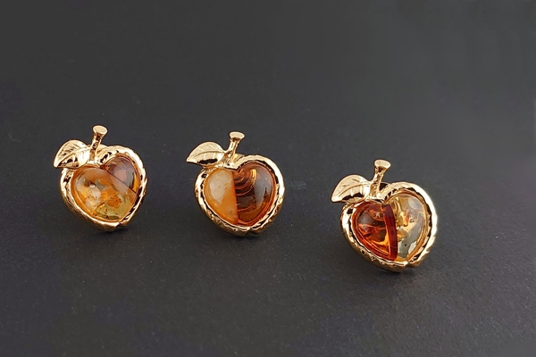 琥珀のパーツはハート形で、明るくキュートな印象の一点です。