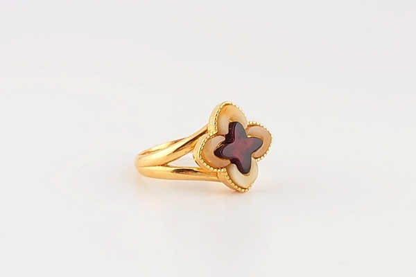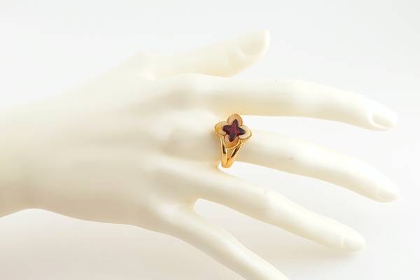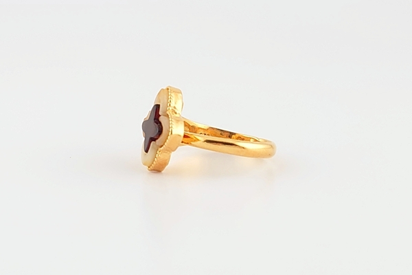 ミルキーカラーとワインカラーのパーツを組み合わせた、バイカラーのデザインリングです。