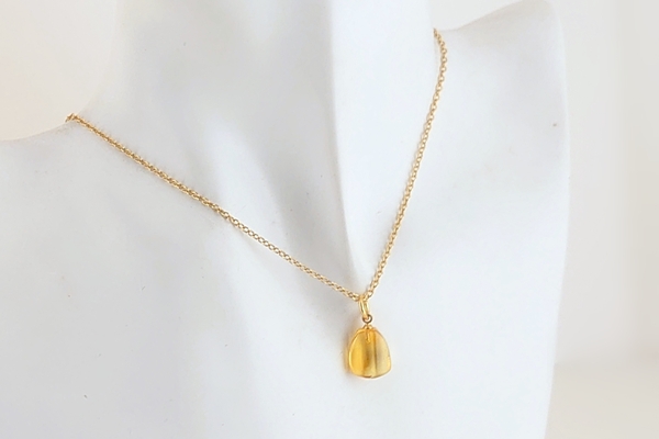 「金琥珀」と呼ばれる、久慈産琥珀の中では珍しい明るい色合いのペンダントです。