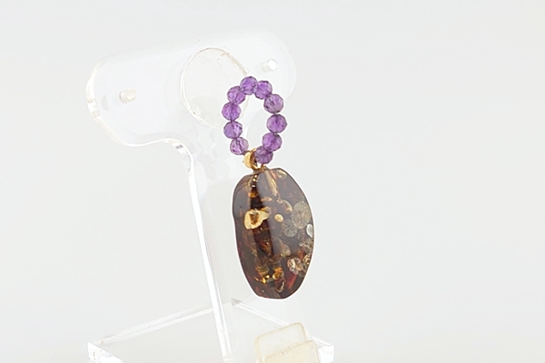 | 素材 | 海外産琥珀、天然石(アメジスト) |
