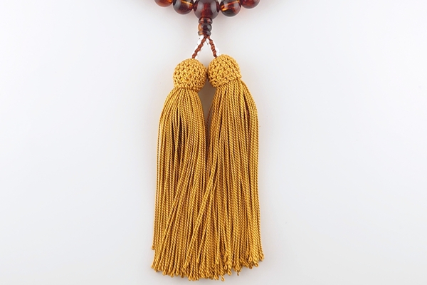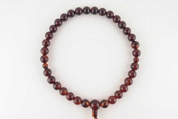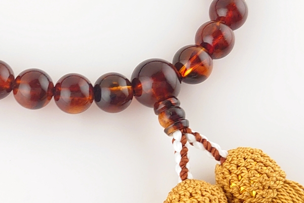 深みのある色合いの久慈産琥珀で仕立てた、女性用の片手念珠です。
