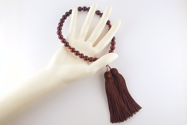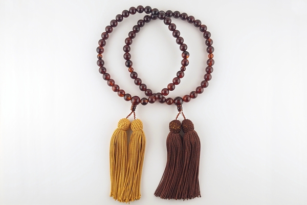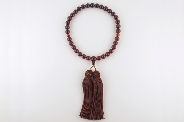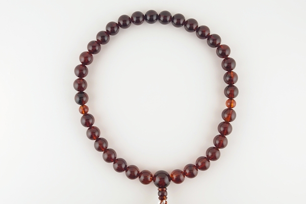 深みのある色合いの久慈産琥珀で仕立てた、女性用の片手念珠です。