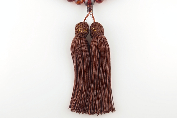 正絹の房は、琥珀と同系色の焦げ茶色でお仕立ていたしました。