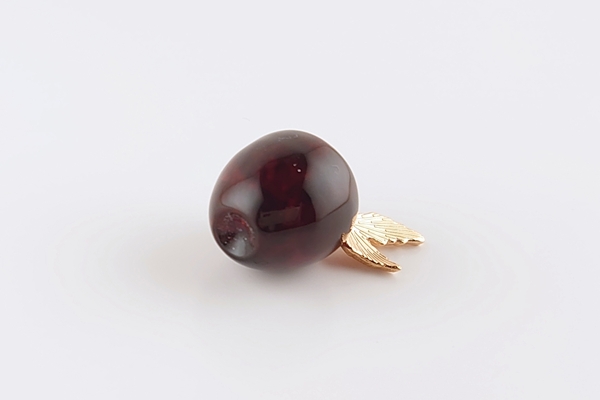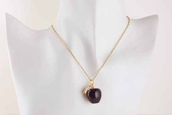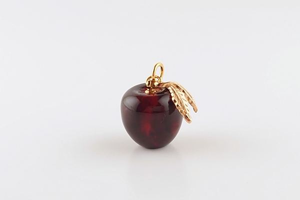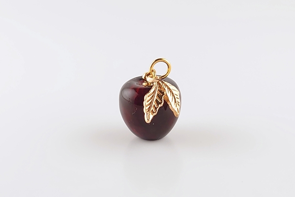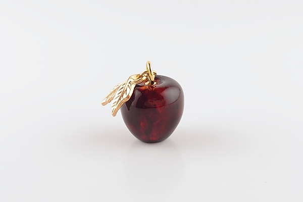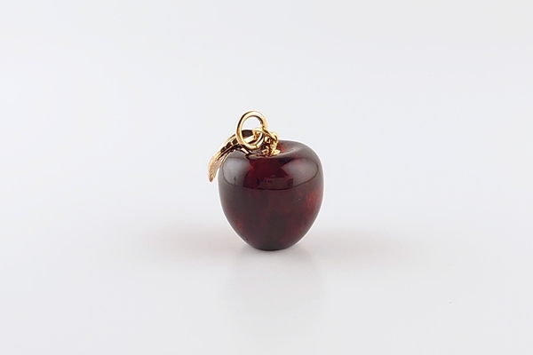 リファインドアンバーで、立体的にりんごを彫刻したペンダントトップ。