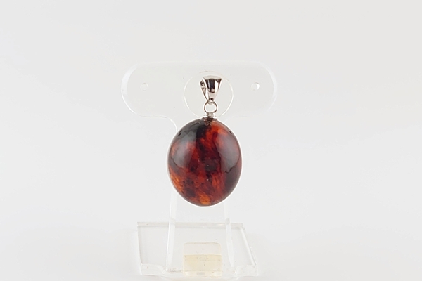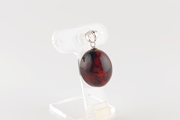 ふっくらとしたオーバル型の、久慈産琥珀のペンダントトップ。