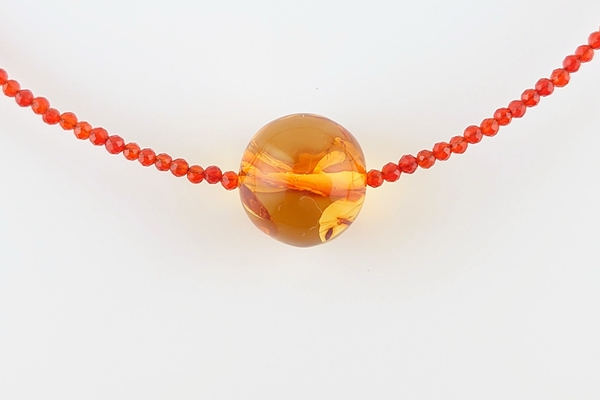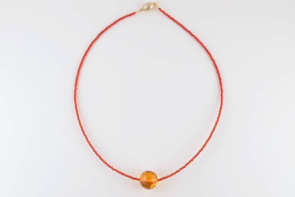 直径約15mmの丸玉に、色鮮やかなカーネリアンを合わせたネックレスです。