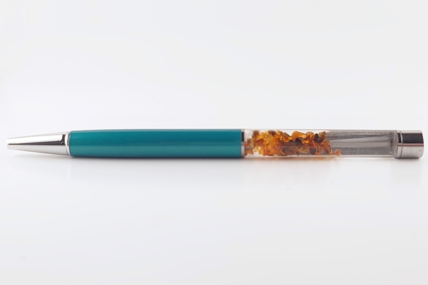 久慈産琥珀のかけらが浮かぶ、フローティングボールペンです。