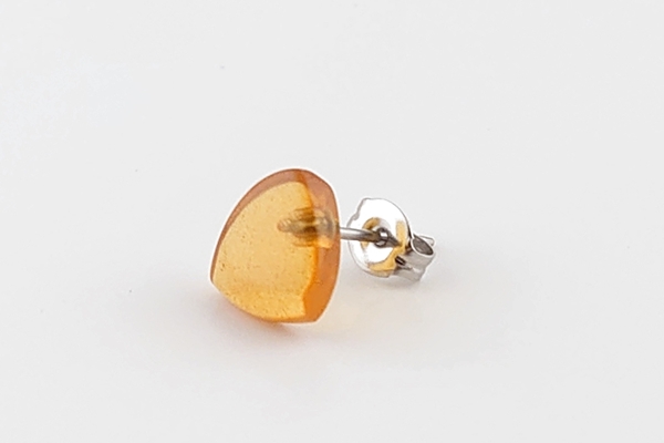 薄い色合いとフラットなカットがお肌に溶け込む、久慈産琥珀のピアスです。