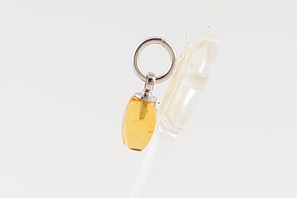 透明度の高い久慈産琥珀の中には、よく見ると細かな内包物が浮かびます。