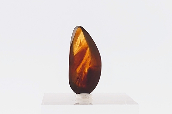 くっきりとした色の濃淡と、斜めに走る縞目模様が特徴的な、久慈産琥珀のルースです。
