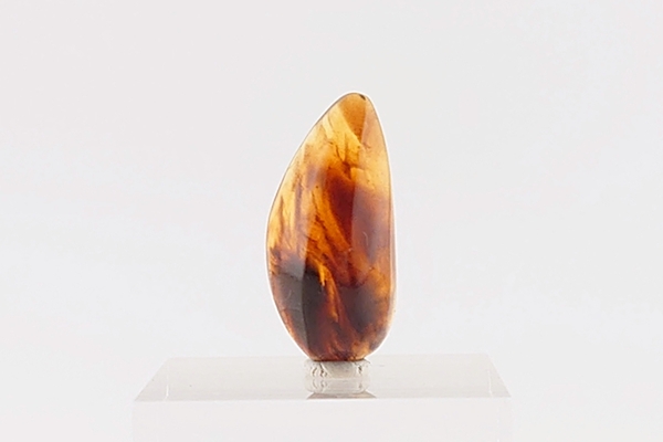 <金琥珀>と呼ばれ珍重されている、半透明な茶褐色から、赤褐色・縞目模様の琥珀が