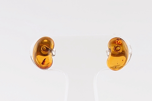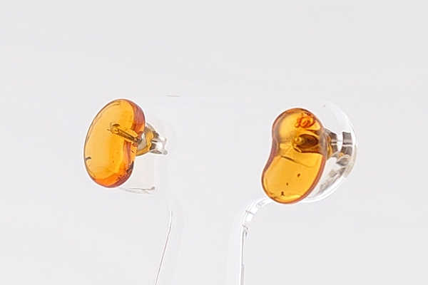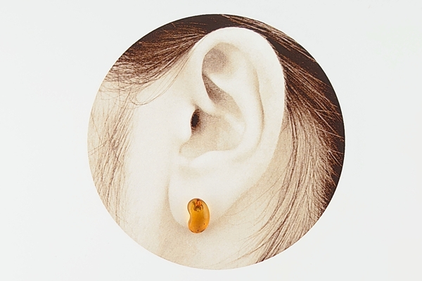 ふっくらとしたシェイプがかわいい、ビーンズモチーフの海外産琥珀のピアスです。