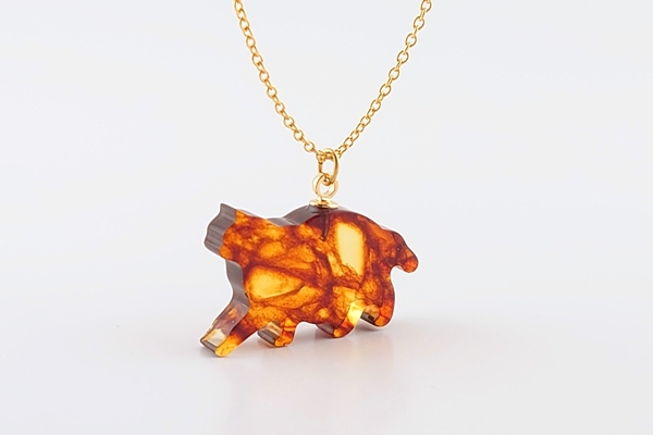 久慈琥珀博物館の名物ネコ「マイケル」のシルエットをかたどったネックレスです。