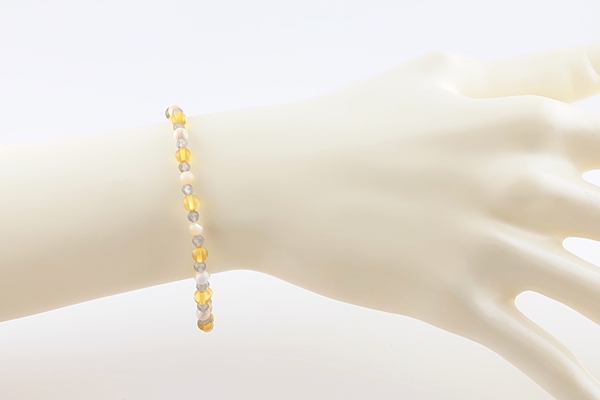 パーツの大きさを揃えた、天然石と海外産琥珀を交互に組み上げたブレスレットです。